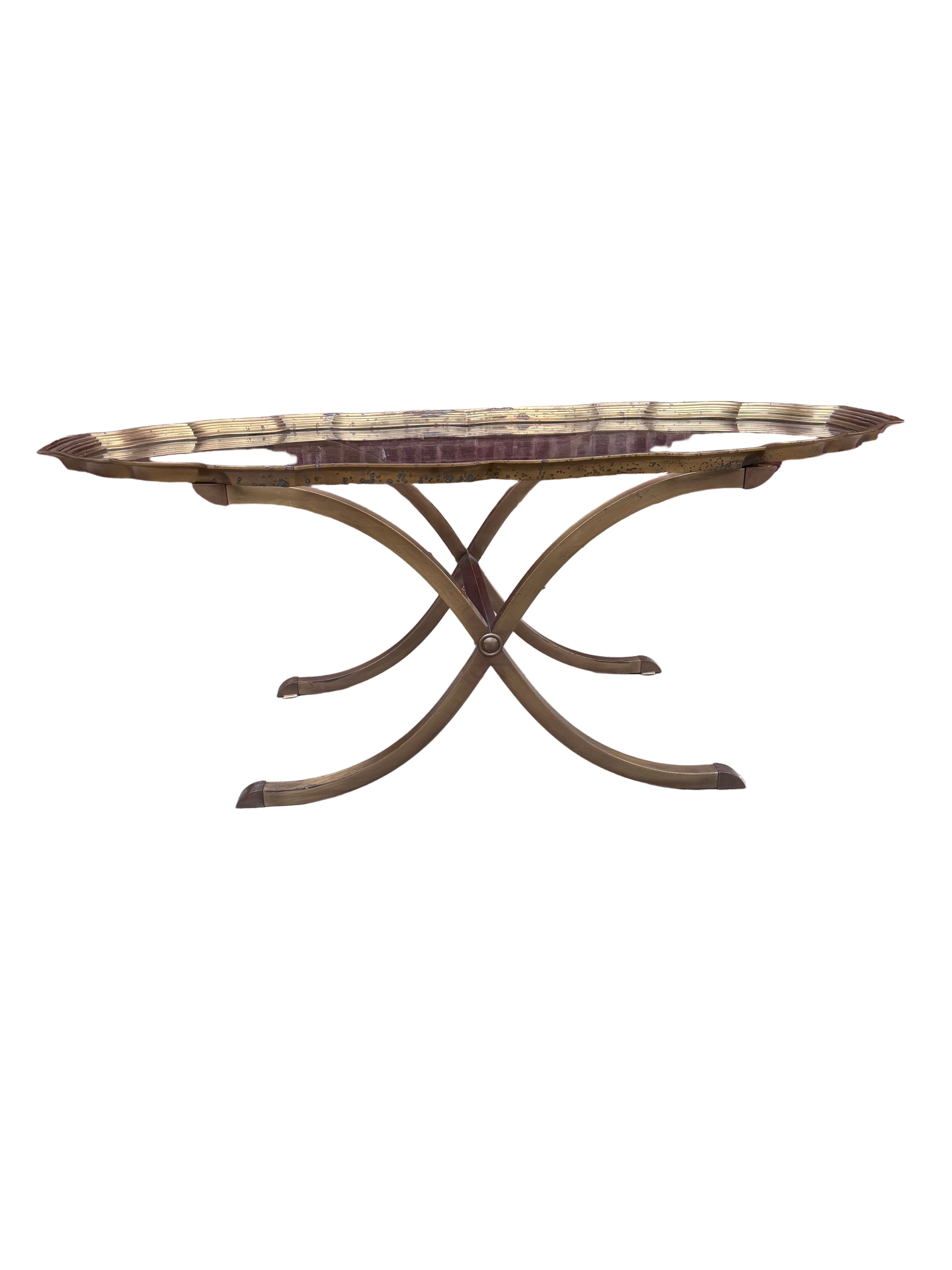 New - Hollywood Regency LaBarge Brass Tray Top Oval Coffee Table