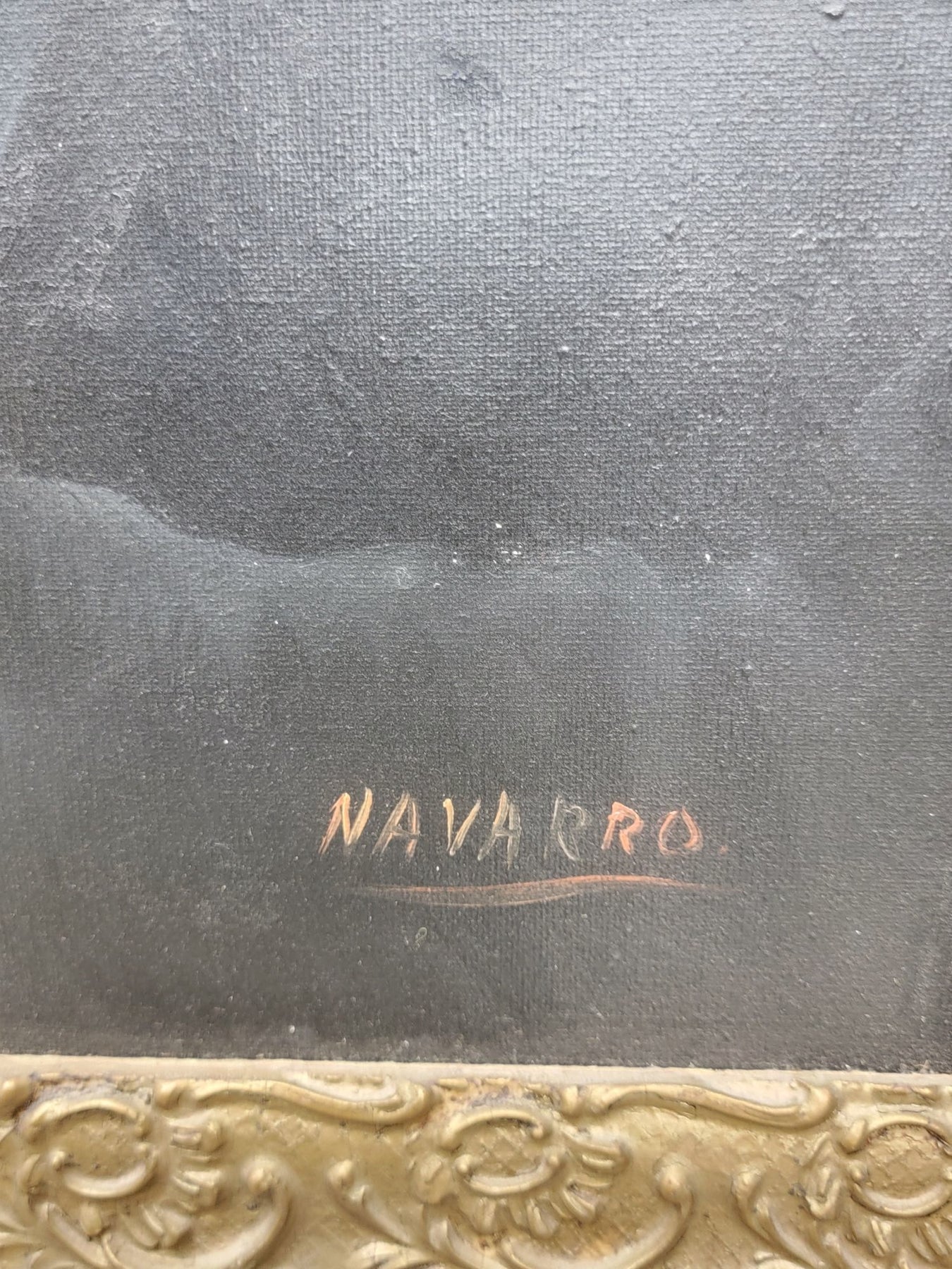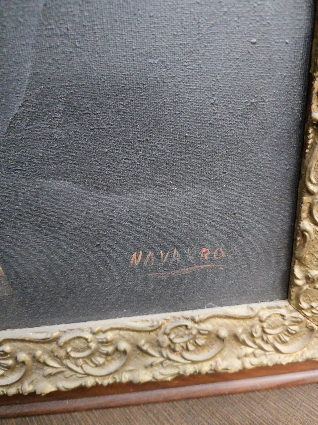 Antique “The Collector” Painting Signed by Navarro – Wood Frame with Inner Gilded Ornate Liner