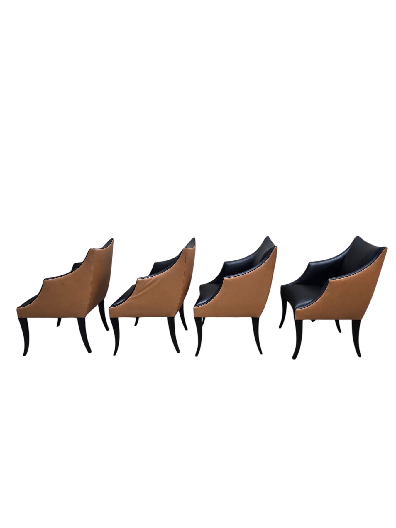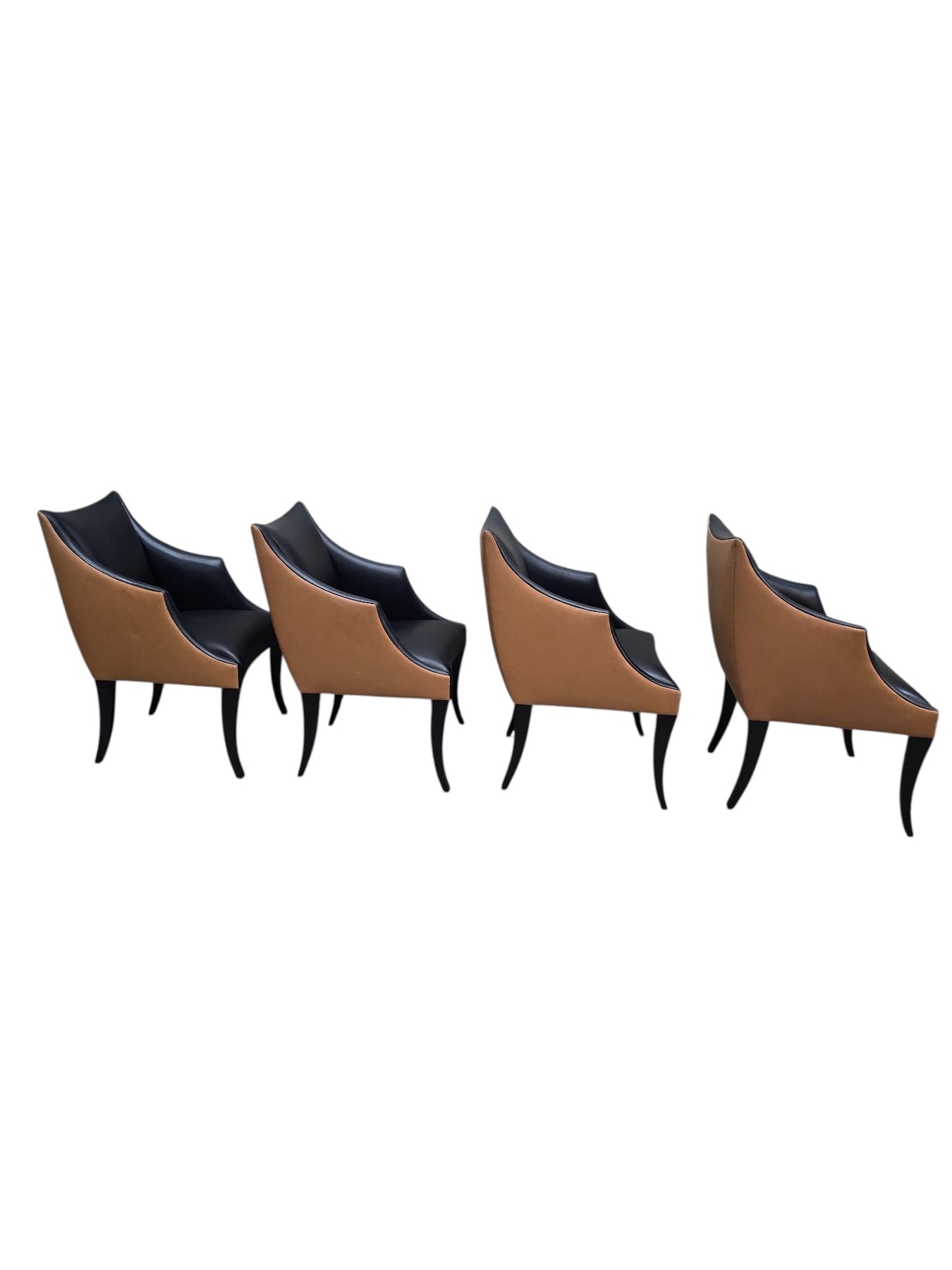 Vintage Contemporary Serpentine Two Toned Leather Armchairs by Donghia for Reupholstery - Set of 4