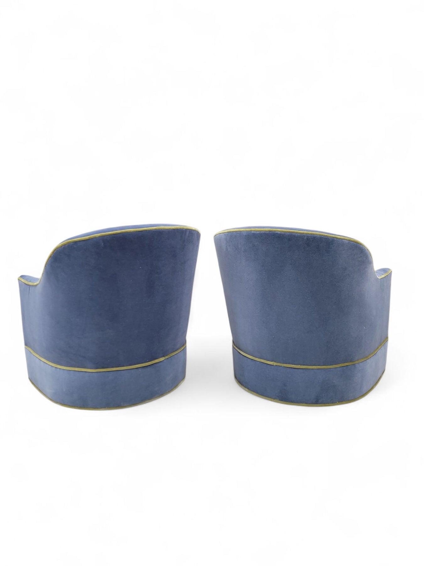 Mid Century Modern Harvey Probber Style Barrel Back Swivel Club Chairs on Caster Newly Reupholstered in Italian Mohair - Set of 4