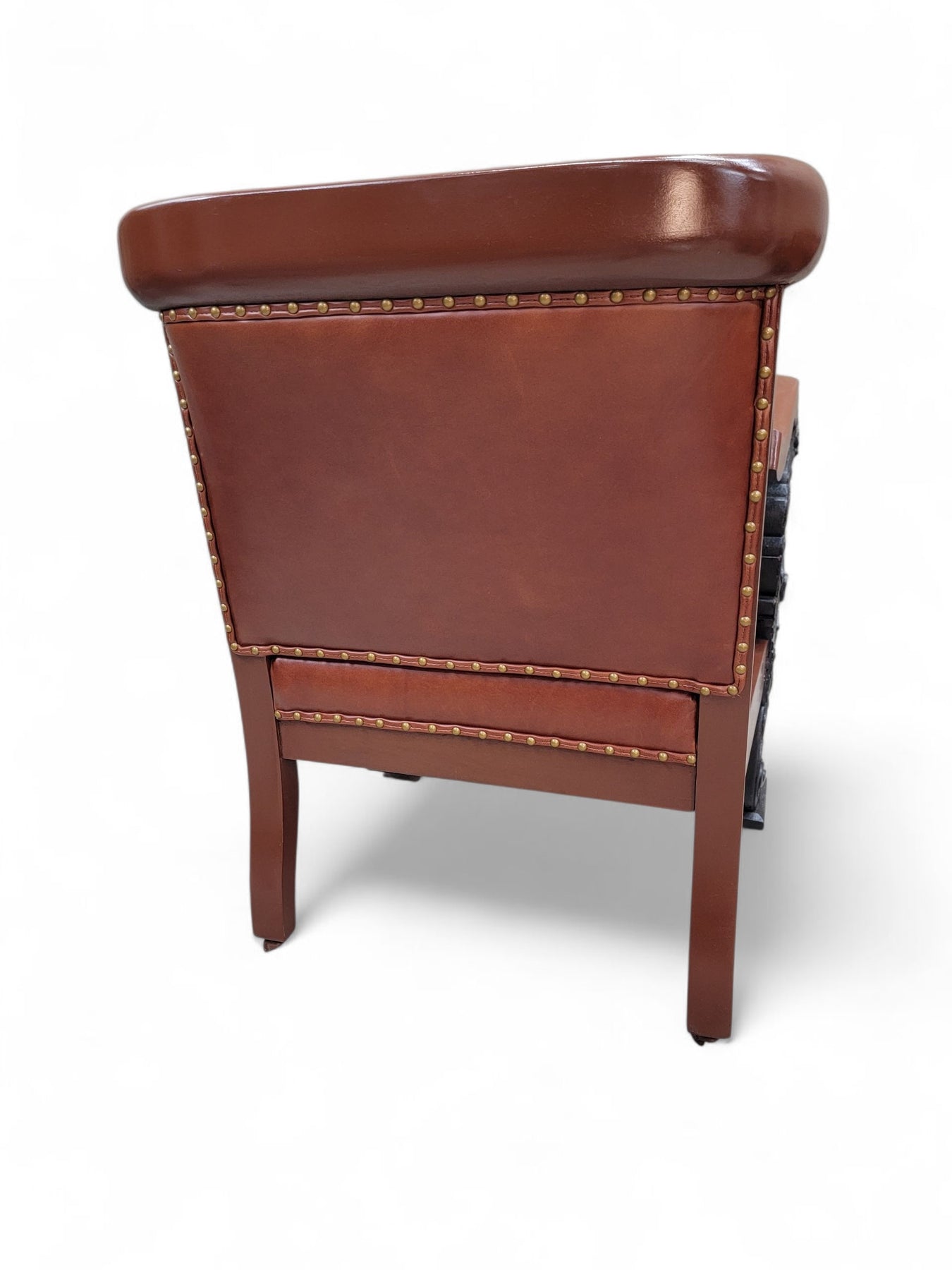 Antique R.J. Horner Style Carved Ebony and Mahogany Winged Griffin Tufted Parlor Set Newly Restored & Reupholstered in a "Cognac" Italian Leather - 3 Piece Set