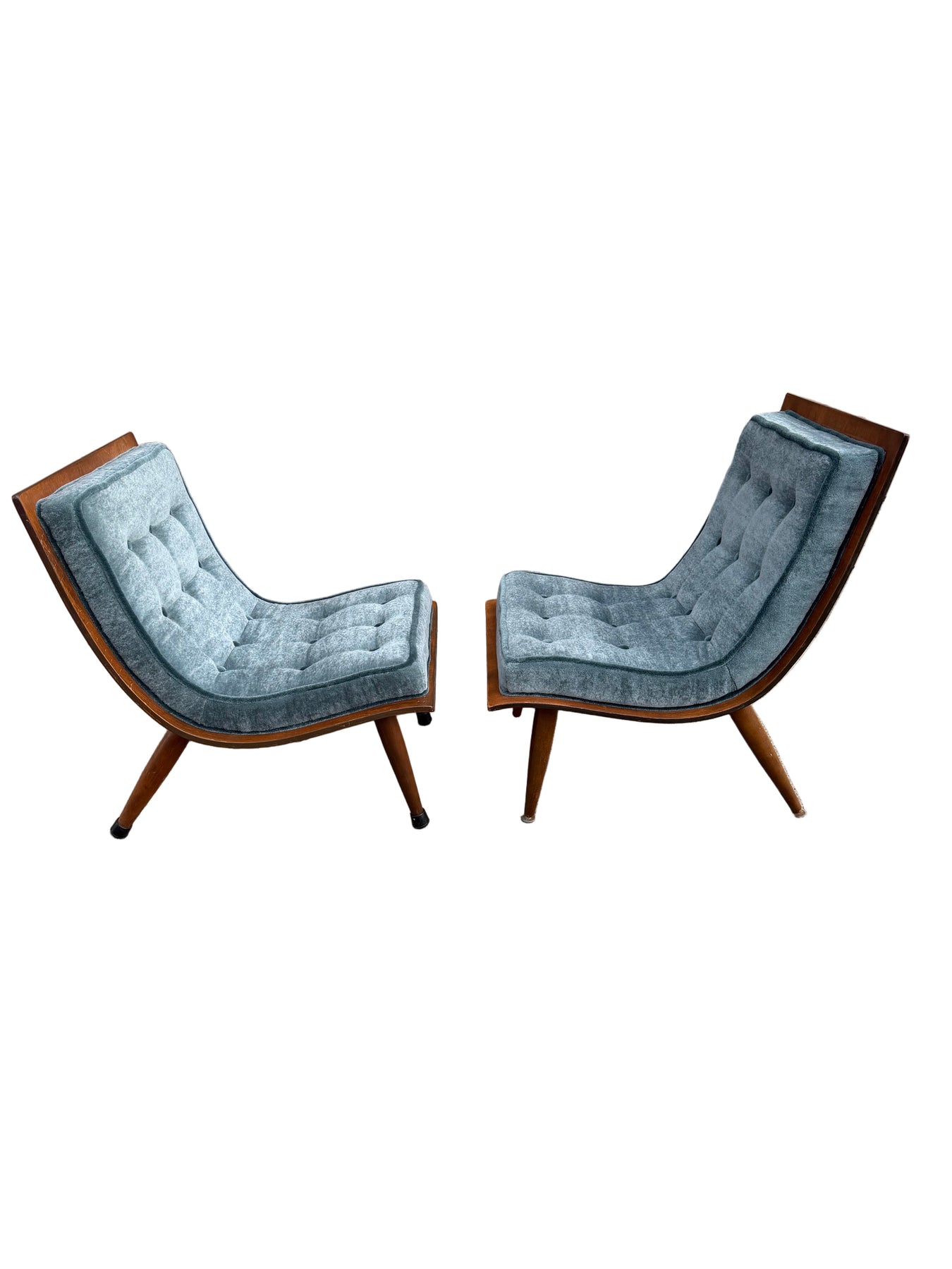 Mid Century Modern Retro Bentwood Scoop Chairs by Carter Brothers Newly Reupholstered Blue Grey Mohair - Set of 2