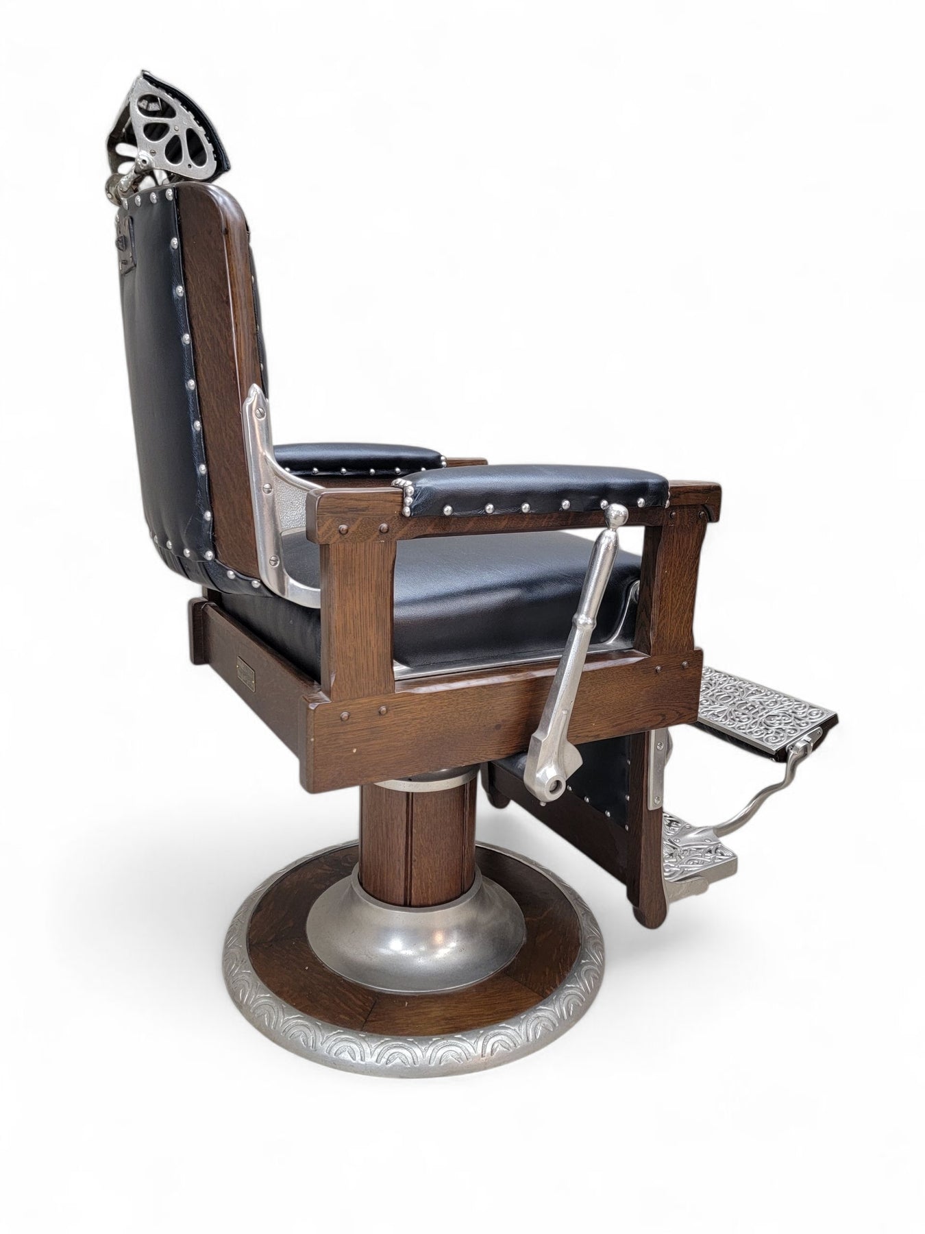 Antique Koken Restored Quartersawn Oak Barber Chairs in Black Leather – Set of 3