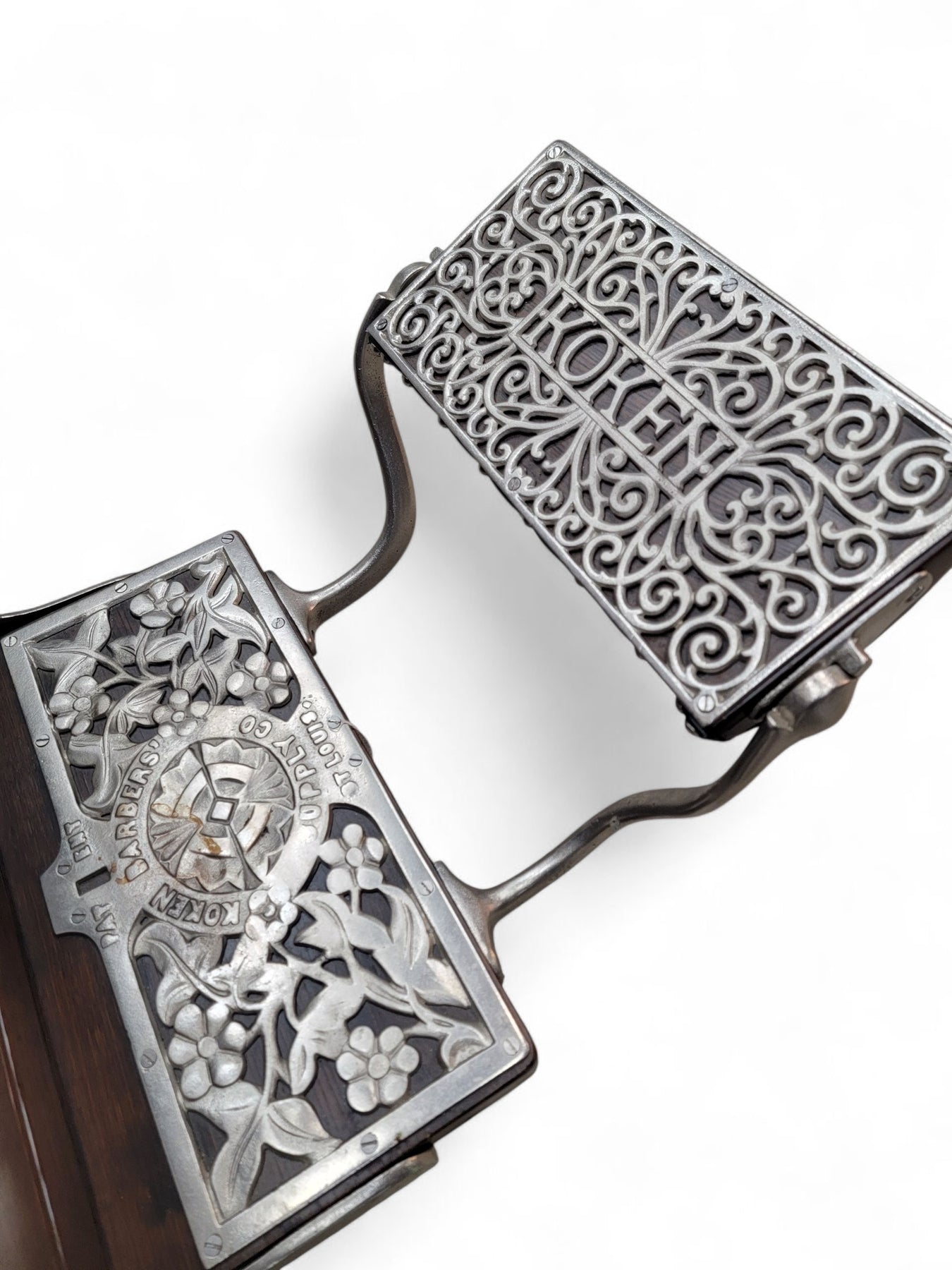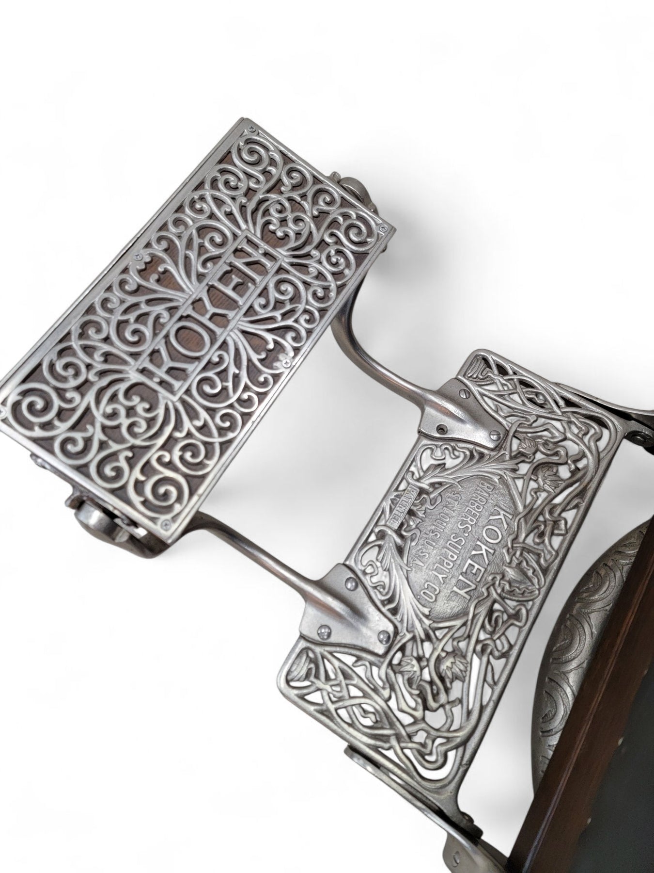 Exceptional and increasingly rare, this set of three antique Koken barber and shave chairs has been professionally restored, showcasing the timeless craftsmanship and industrial elegance that made Koken an icon of early American barbering.