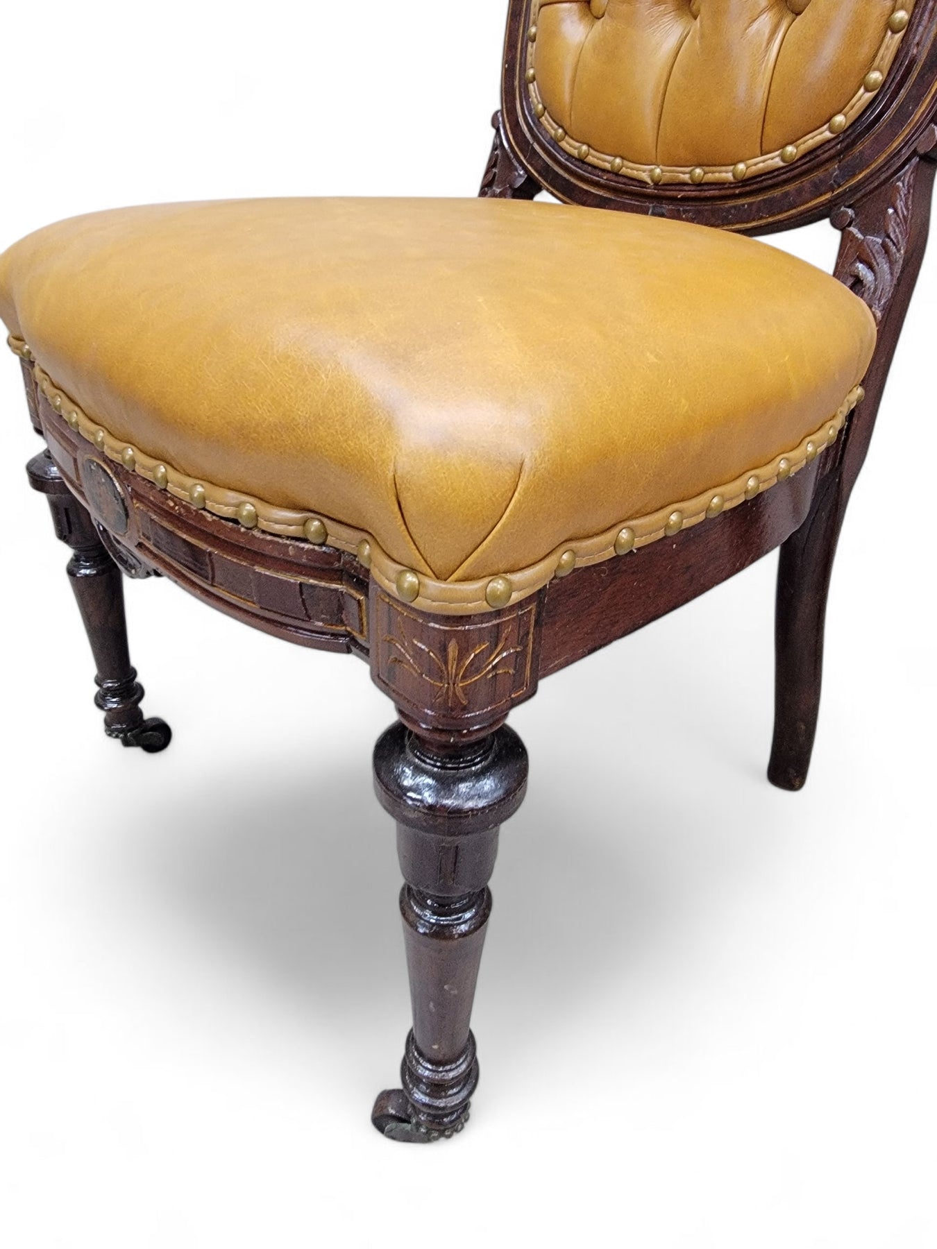 Antique French Regency Style Rosewood Tufted Back Parlor Set Newly Reupholstered in Italian Leather Cognac Color- Set of 4