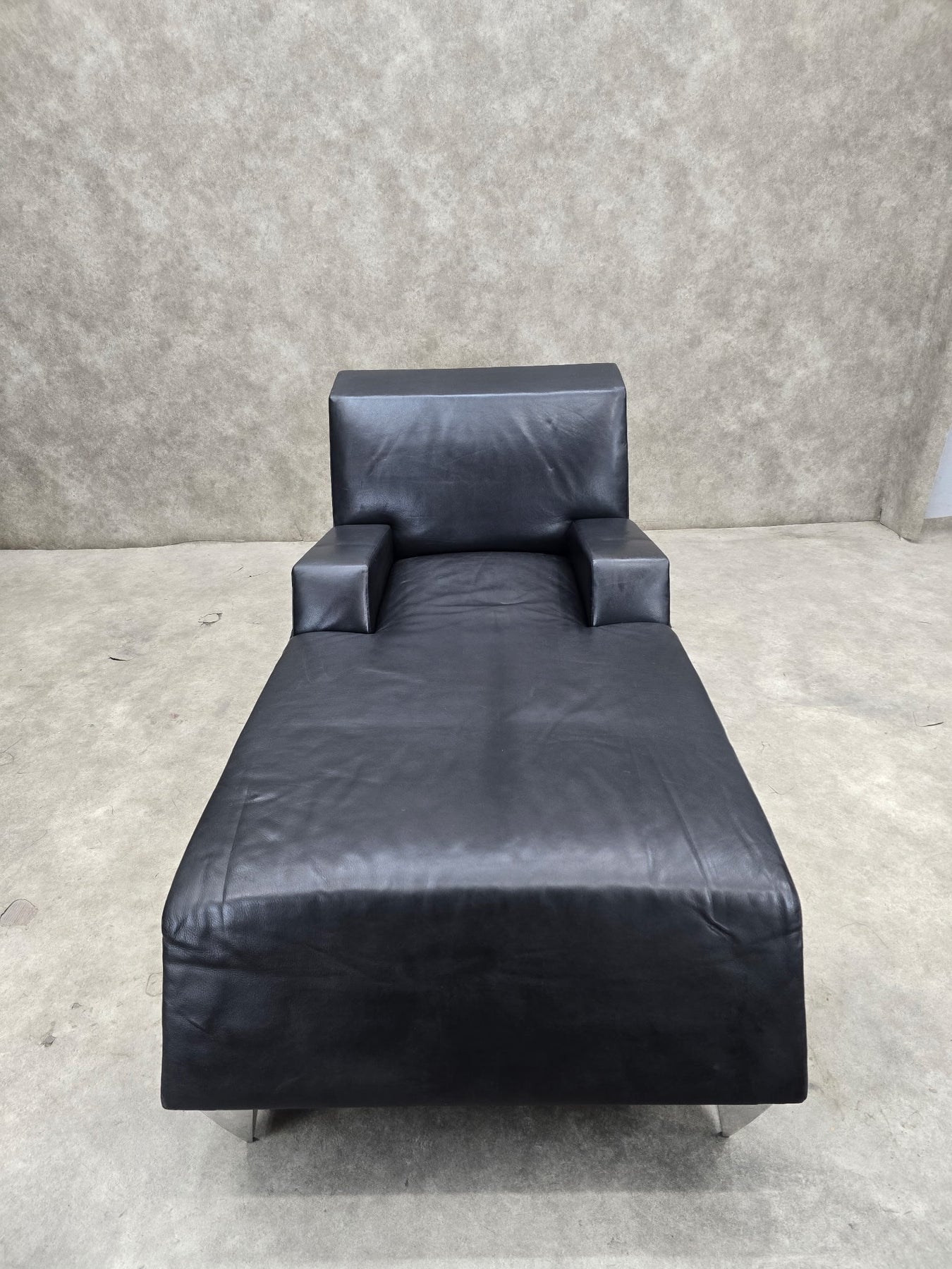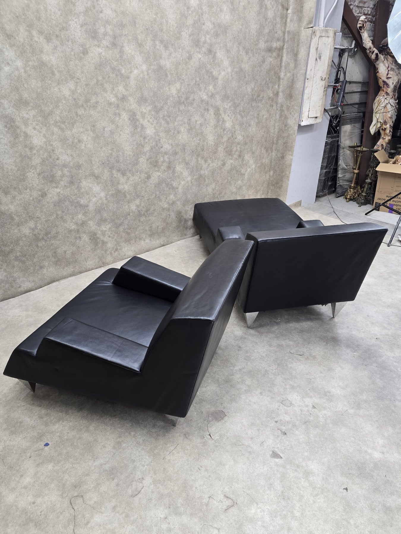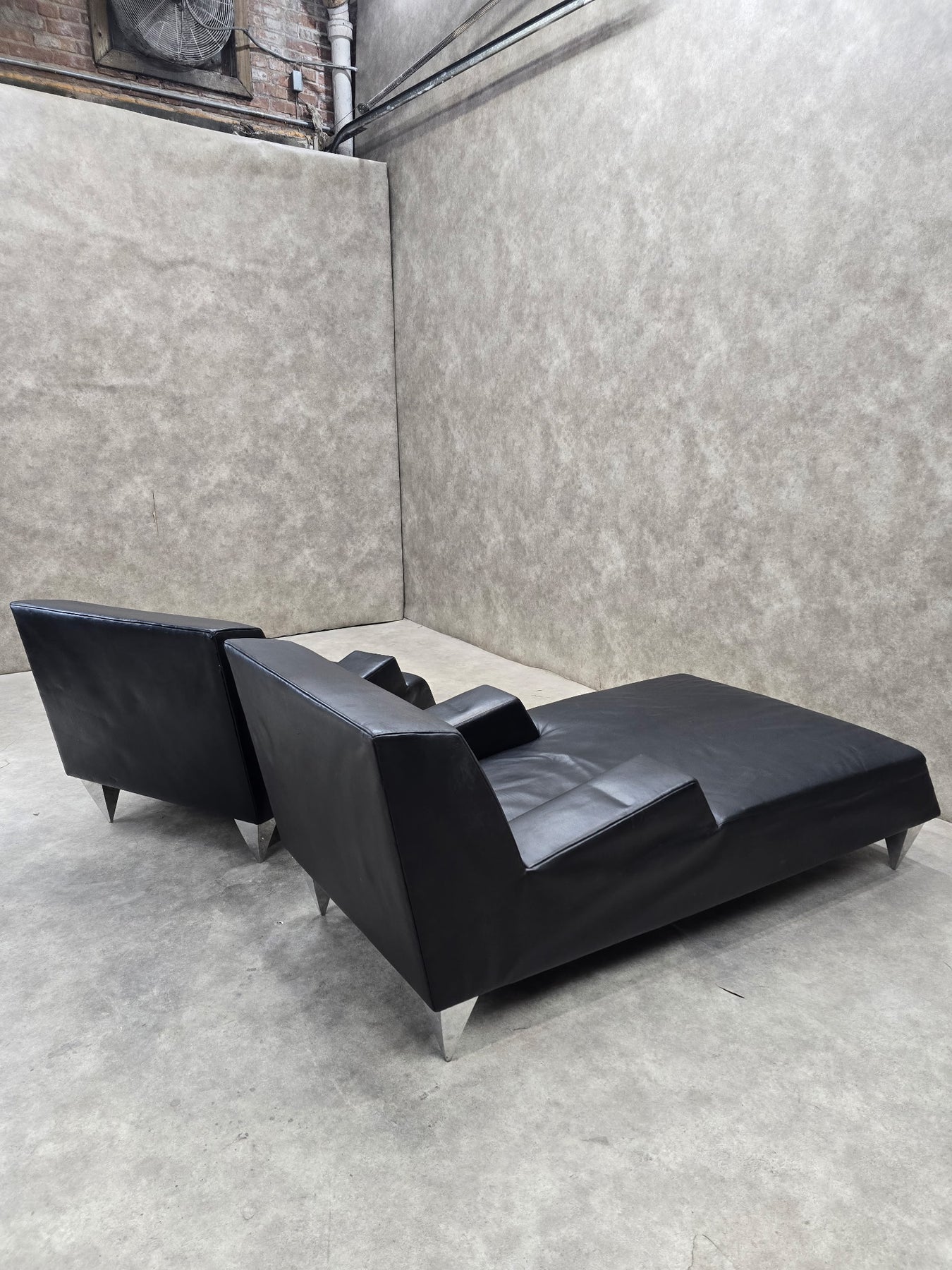 Vintage Black Leather Lounge Chair and Chaise Lounge by Catherine Chanicci for Reupholstery - 2 Piece Set