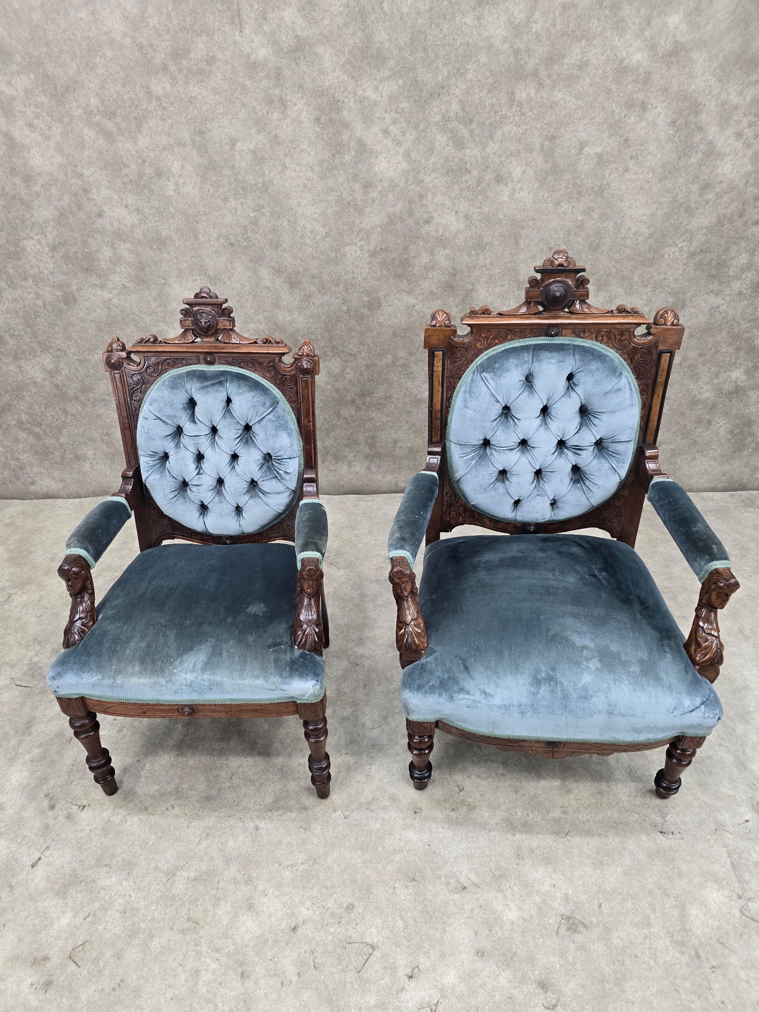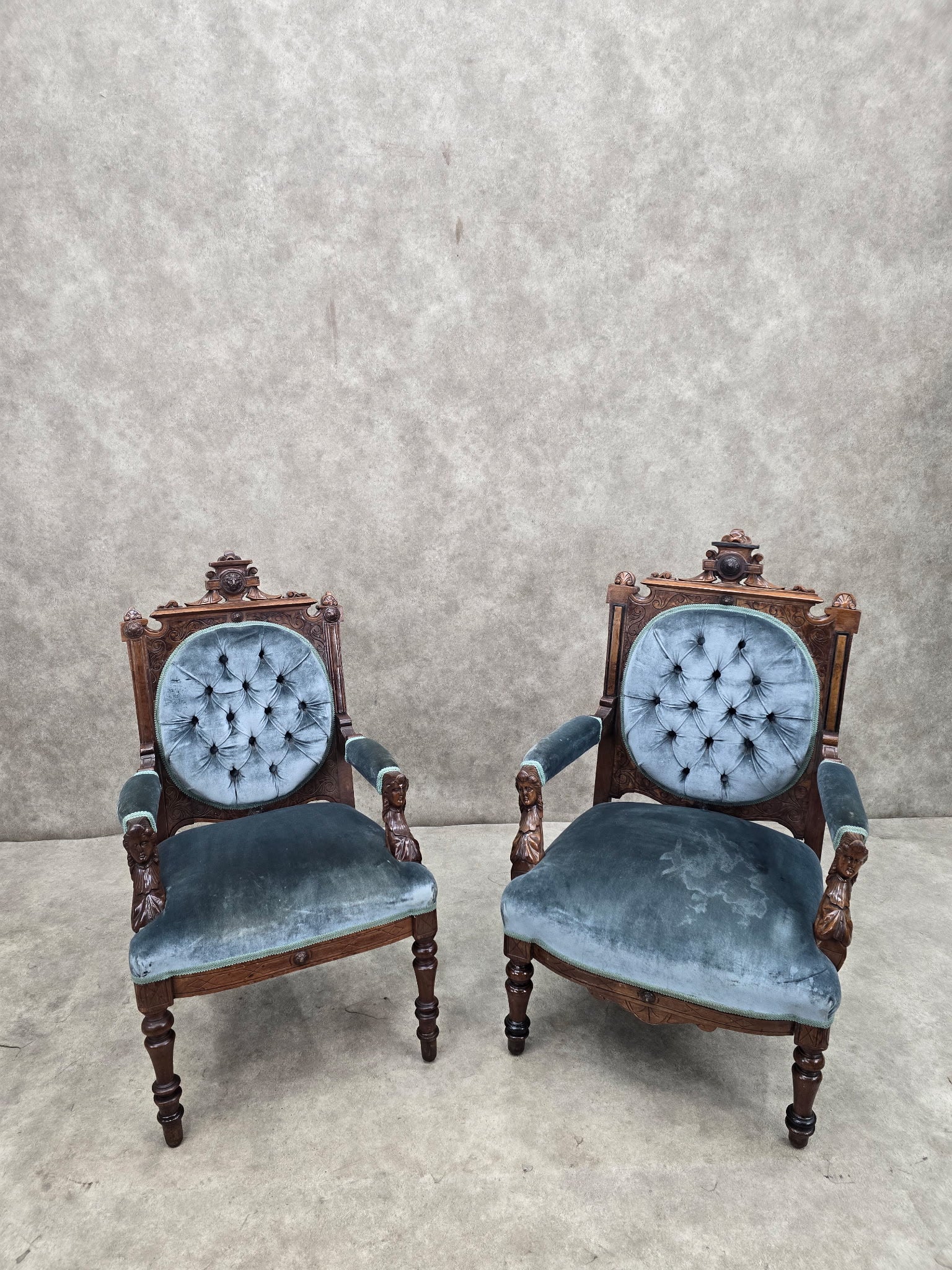 new - Antique Renaissance Revival Carved Chairs by John Jelliff - Set of 2