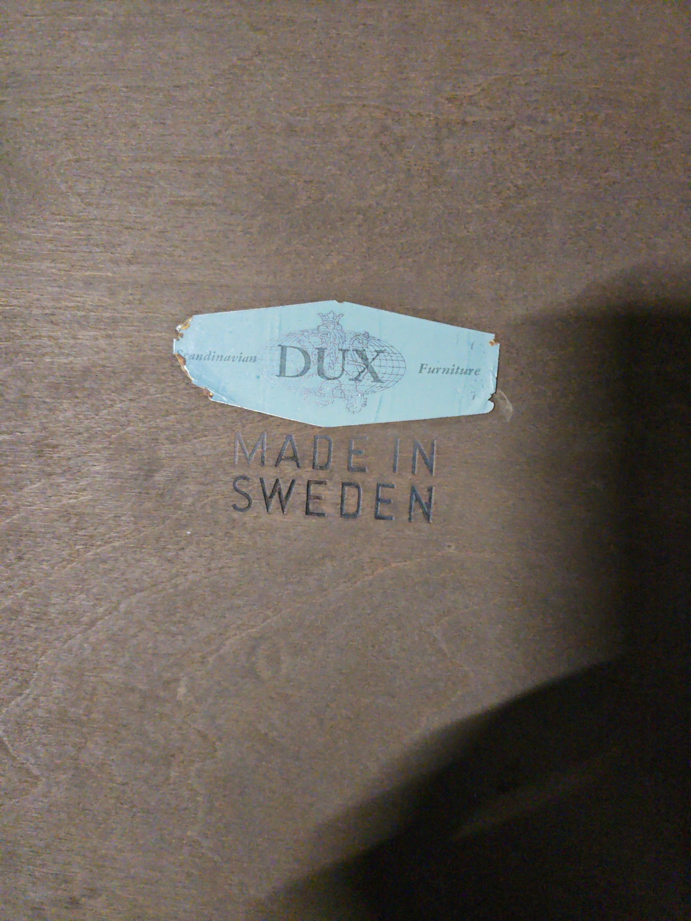Beautifully crafted teak coffee table by DUX of Sweden, featuring warm Scandinavian lines and subtle brass disk inlays. All original and well-preserved, this piece perfectly captures the timeless appeal of mid-century Swedish design. A striking yet versatile addition to any modern or vintage-inspired space.