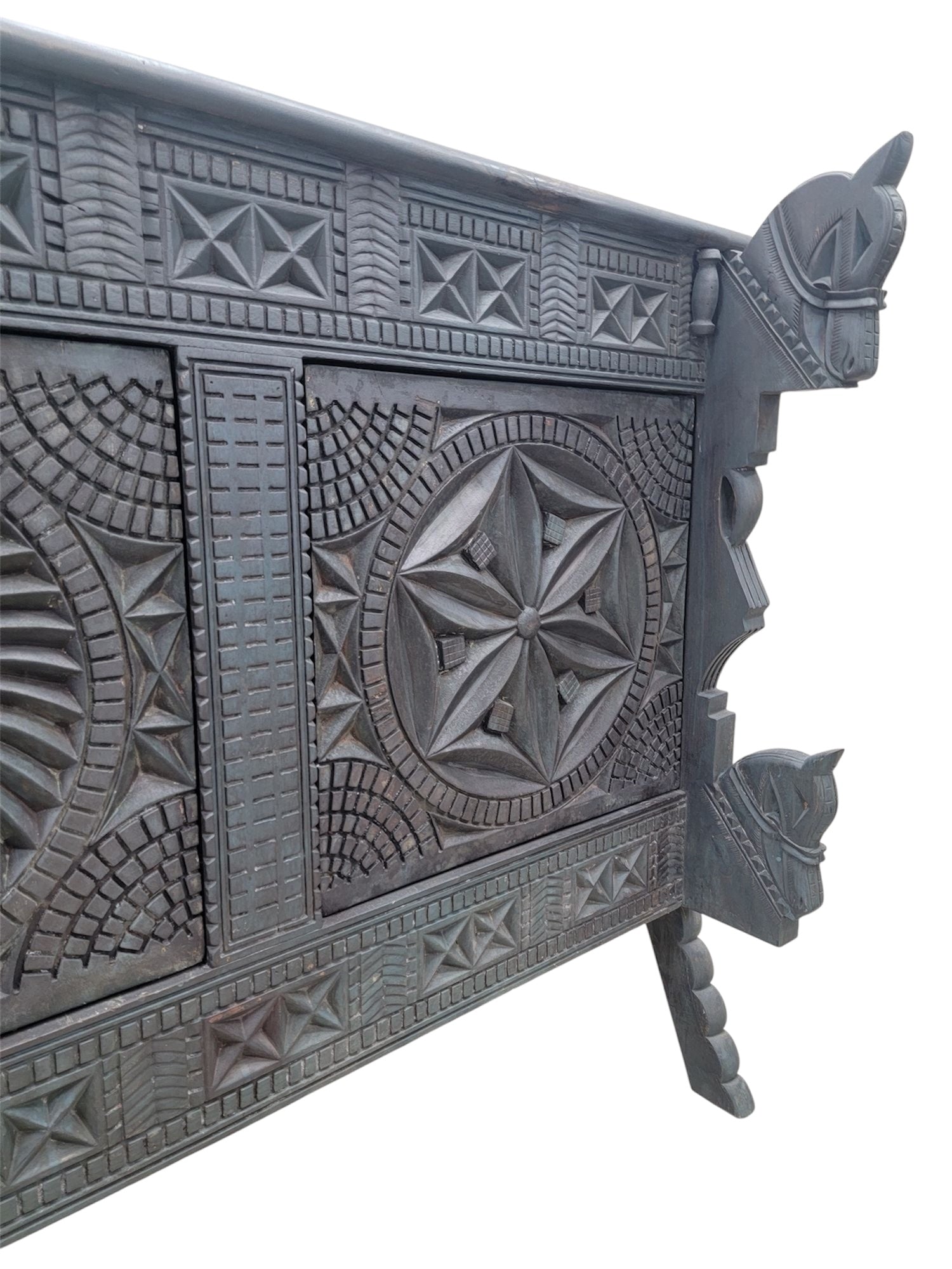 Vintage Chinese Carved Sideboard with Horse Motifs