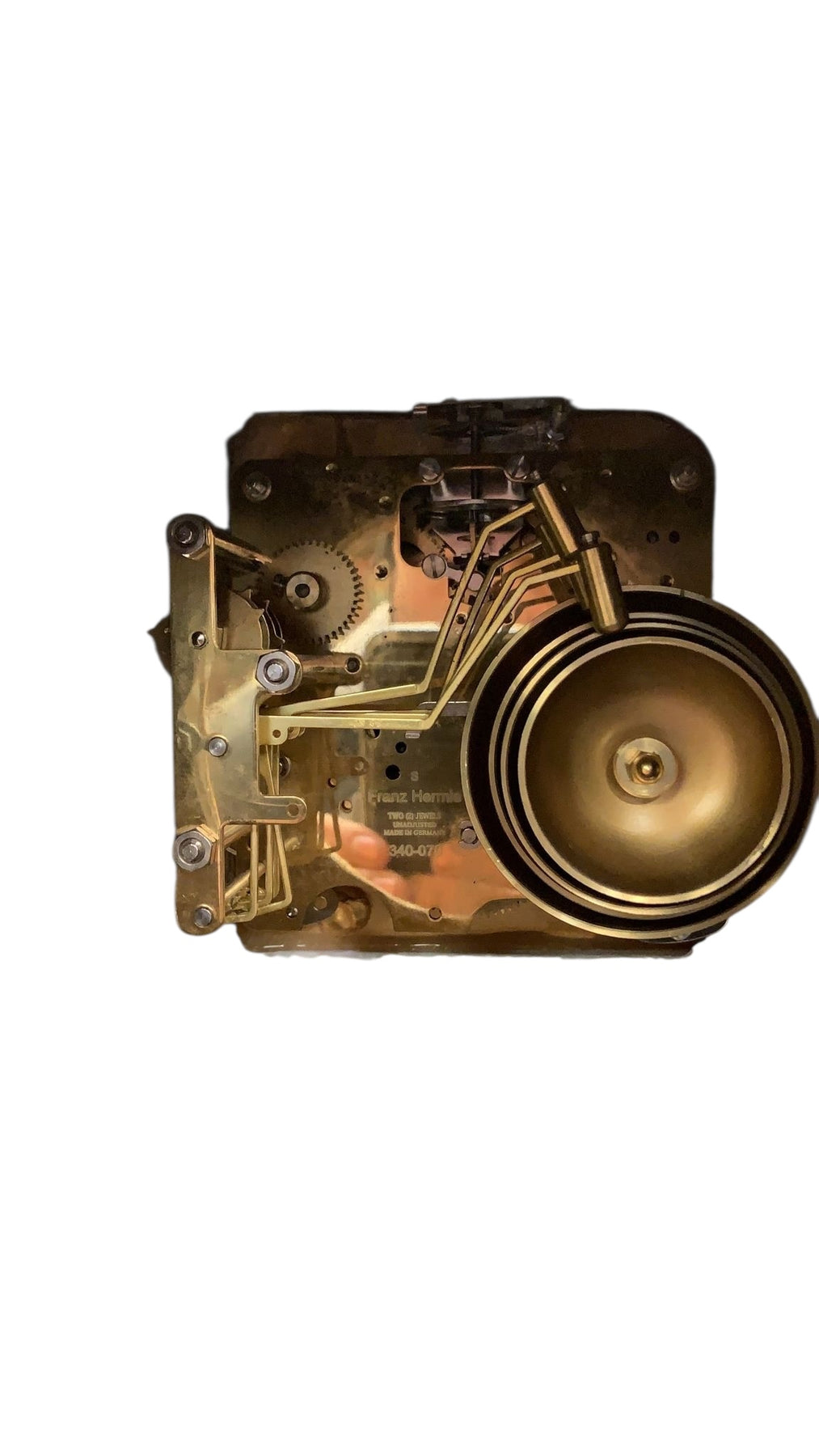 Being sold untested, this piece marked as the "Antique German Franz Hermle multi-chime wind clock'" may require service.