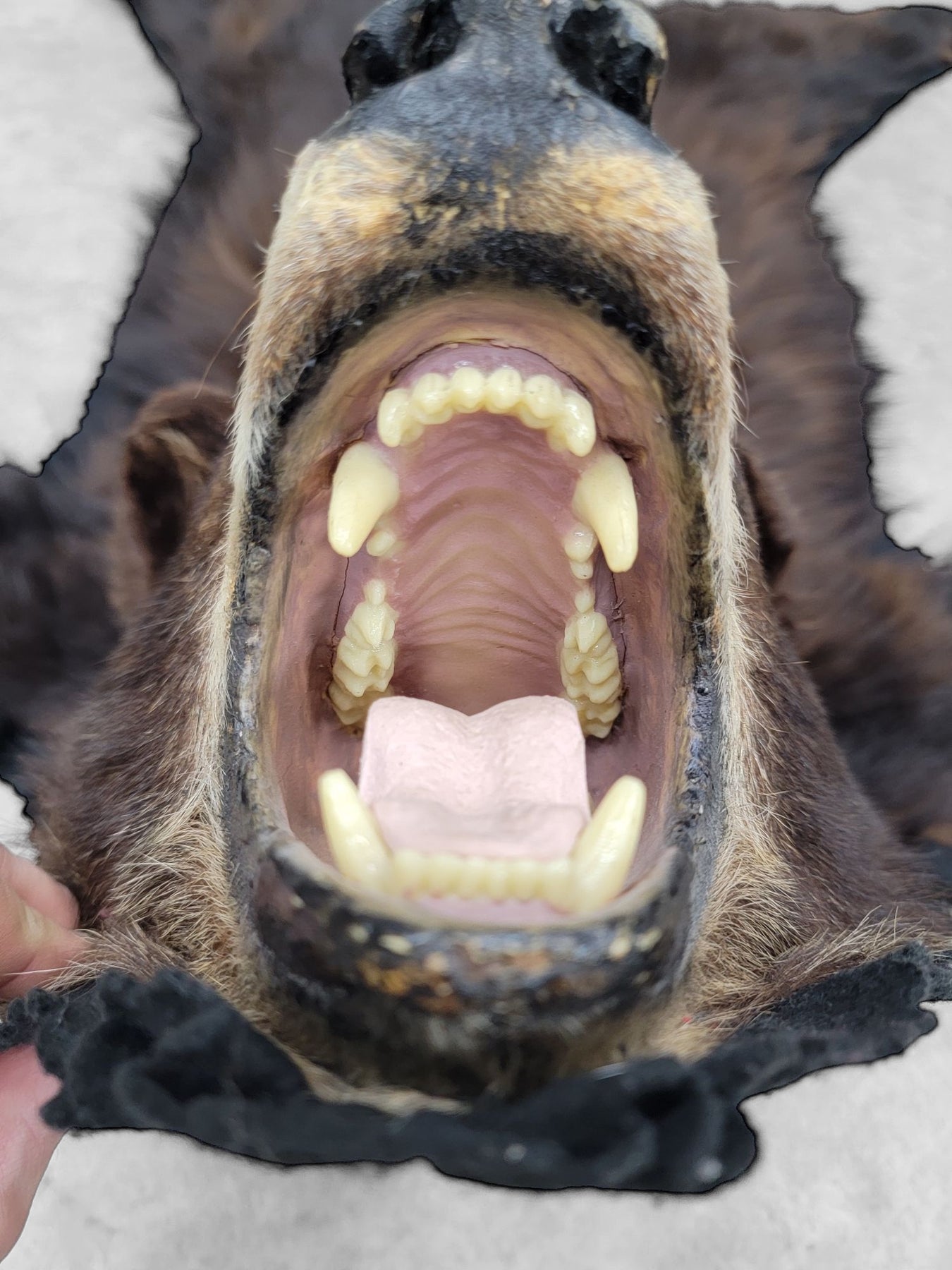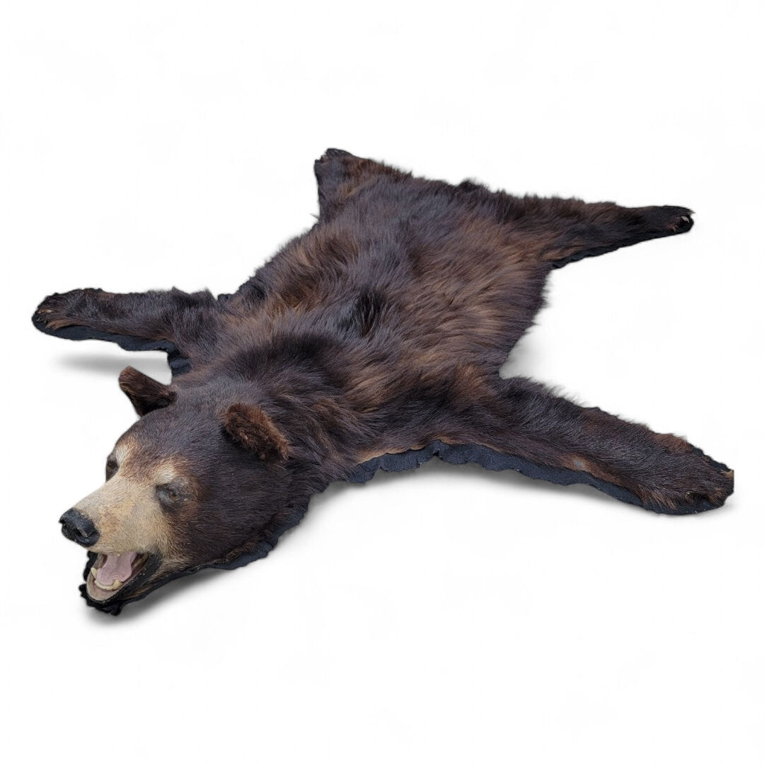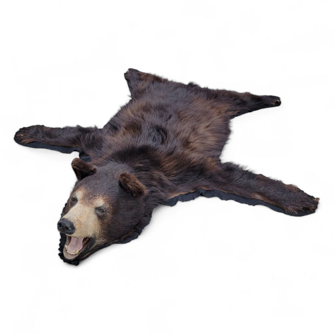 Add a rustic and authentic touch to your home with this Vintage Taxidermy Black Bear Rug. Expertly preserved, the bear is displayed in a classic rug pose, showcasing its rich black fur and lifelike features. Perfect for cabin, lodge, or hunting-inspired décor, this piece serves as both a statement floor covering and a collector’s wildlife piece.