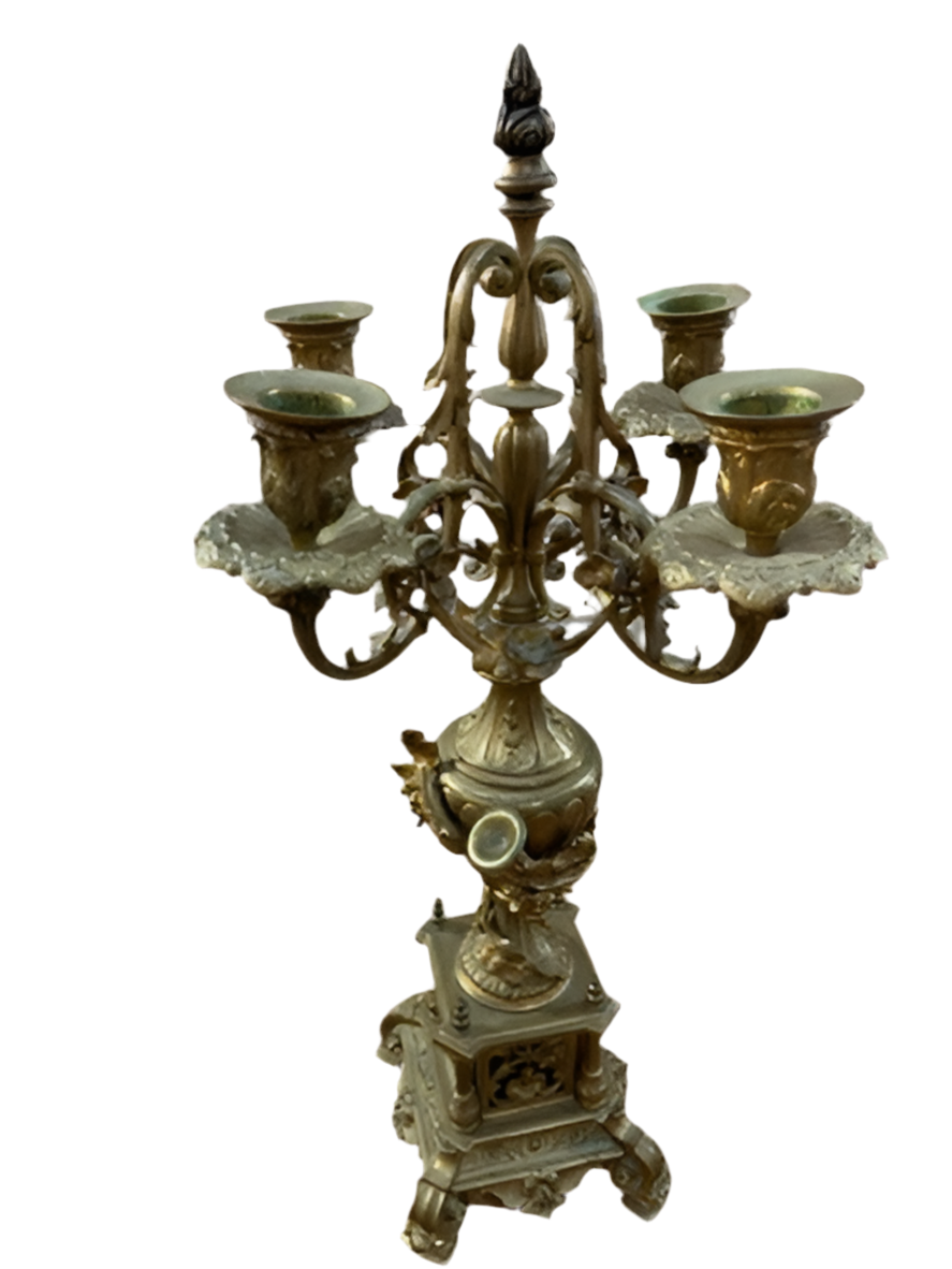 Antique Art Nouveau Mantle Clock and Candelabras - Garniture Set