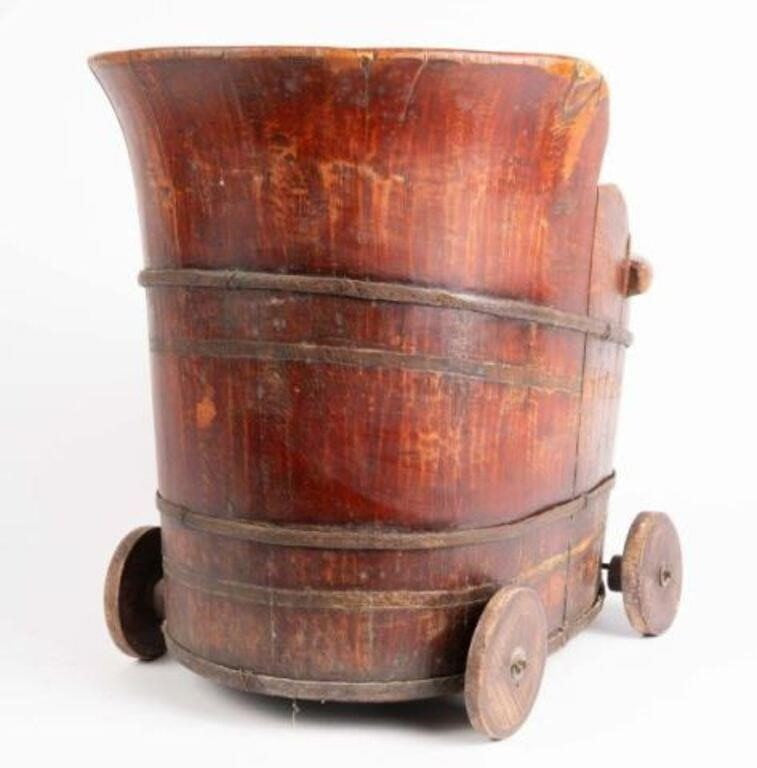 Antique Chinese Qing Dynasty Red Lacquer Child’s Wagon / Wash Tub