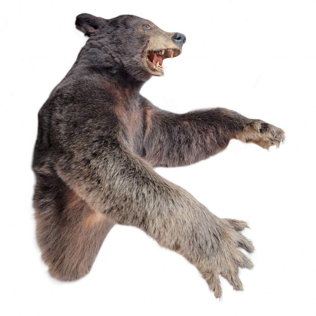 Vintage Half Life-Size Taxidermy Bear – Aggressive Attacking Pose with Raised Paws