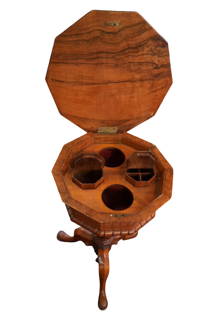 Antique Victorian Style Octagonal Pedestal Sewing Box Table