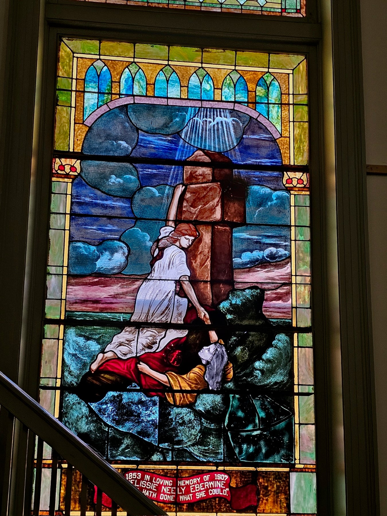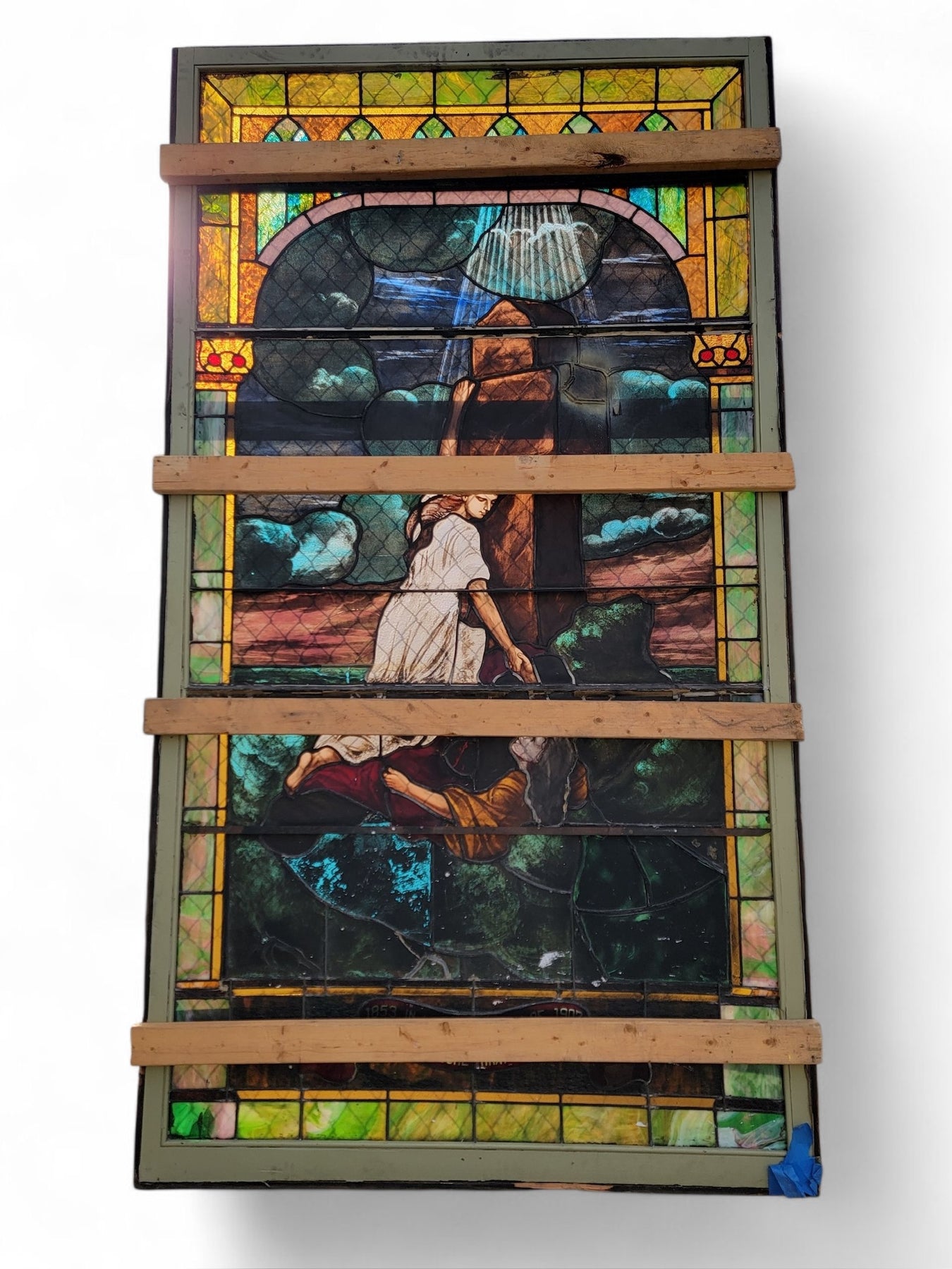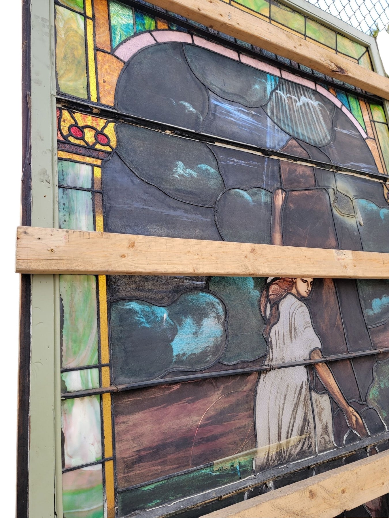 Antique Monumental Tiffany Style Salvaged Chicago Church “Heaven” StainedGlass Window