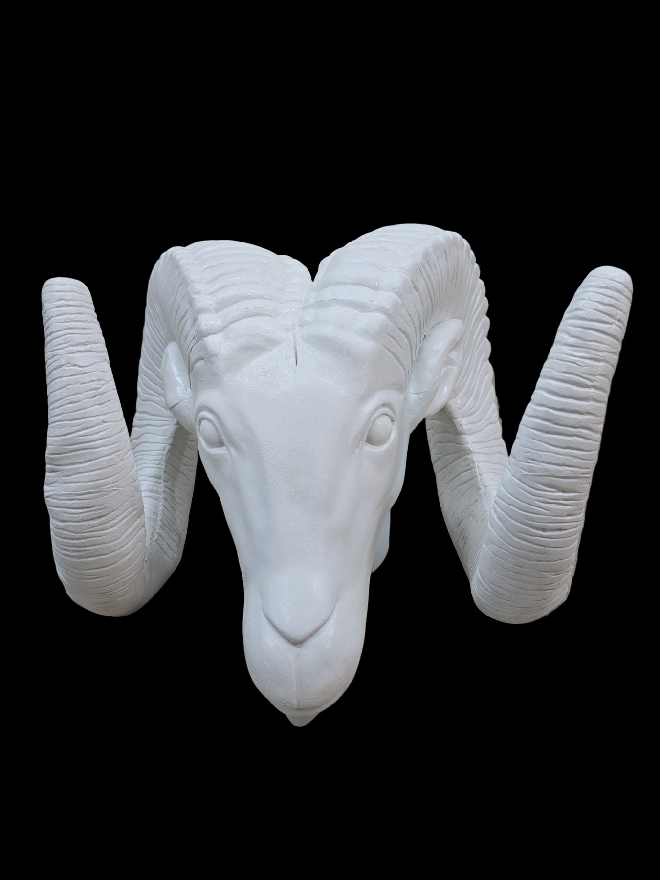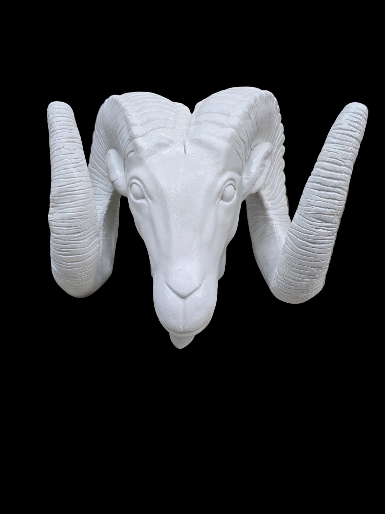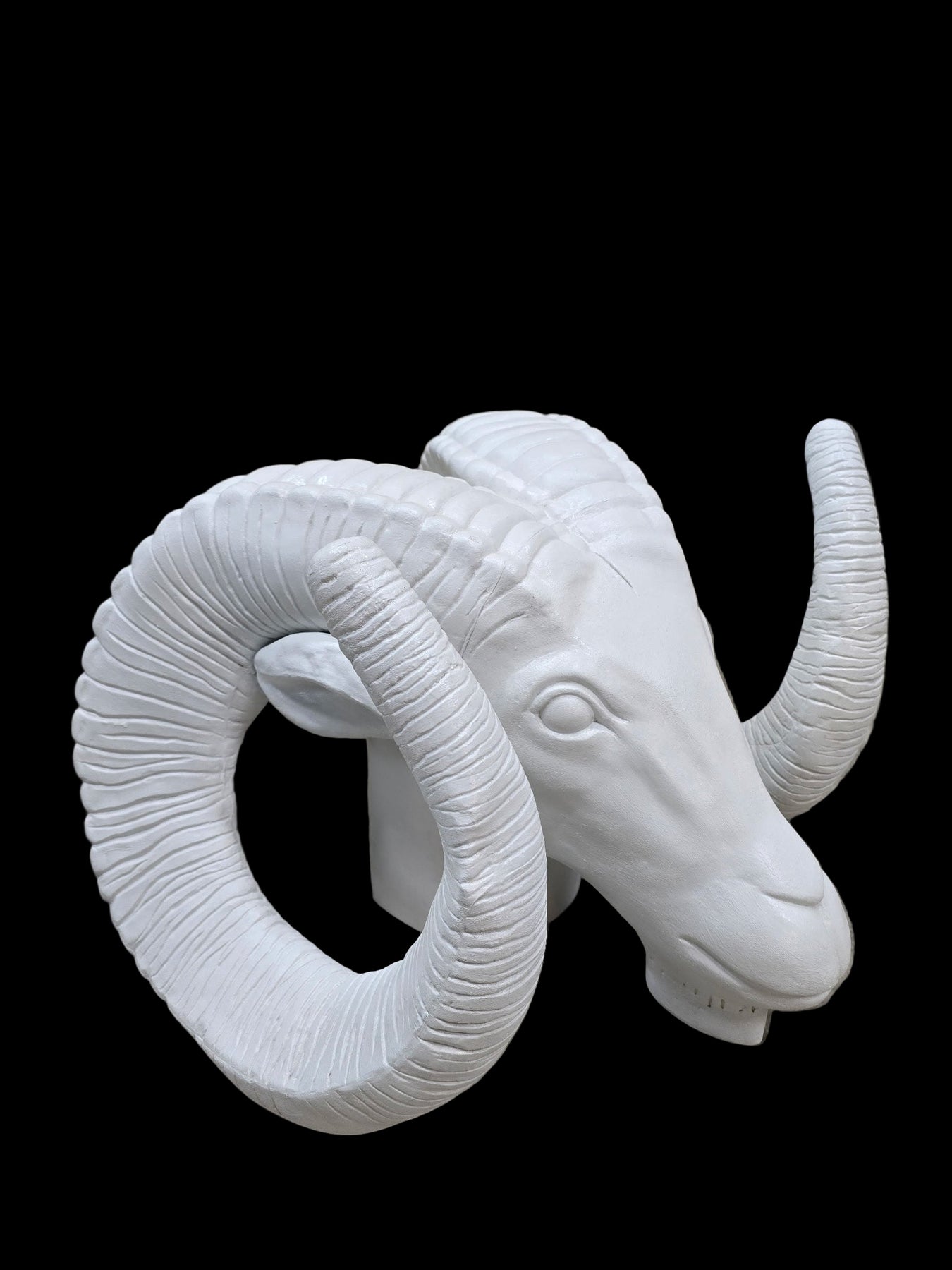 Decorate your rustic space with this oversized white rams head sculpture. The sculpture would look beautiful on your mantlepiece or on a side table. The monochrome coloring make it versatile choice for different color schemes.