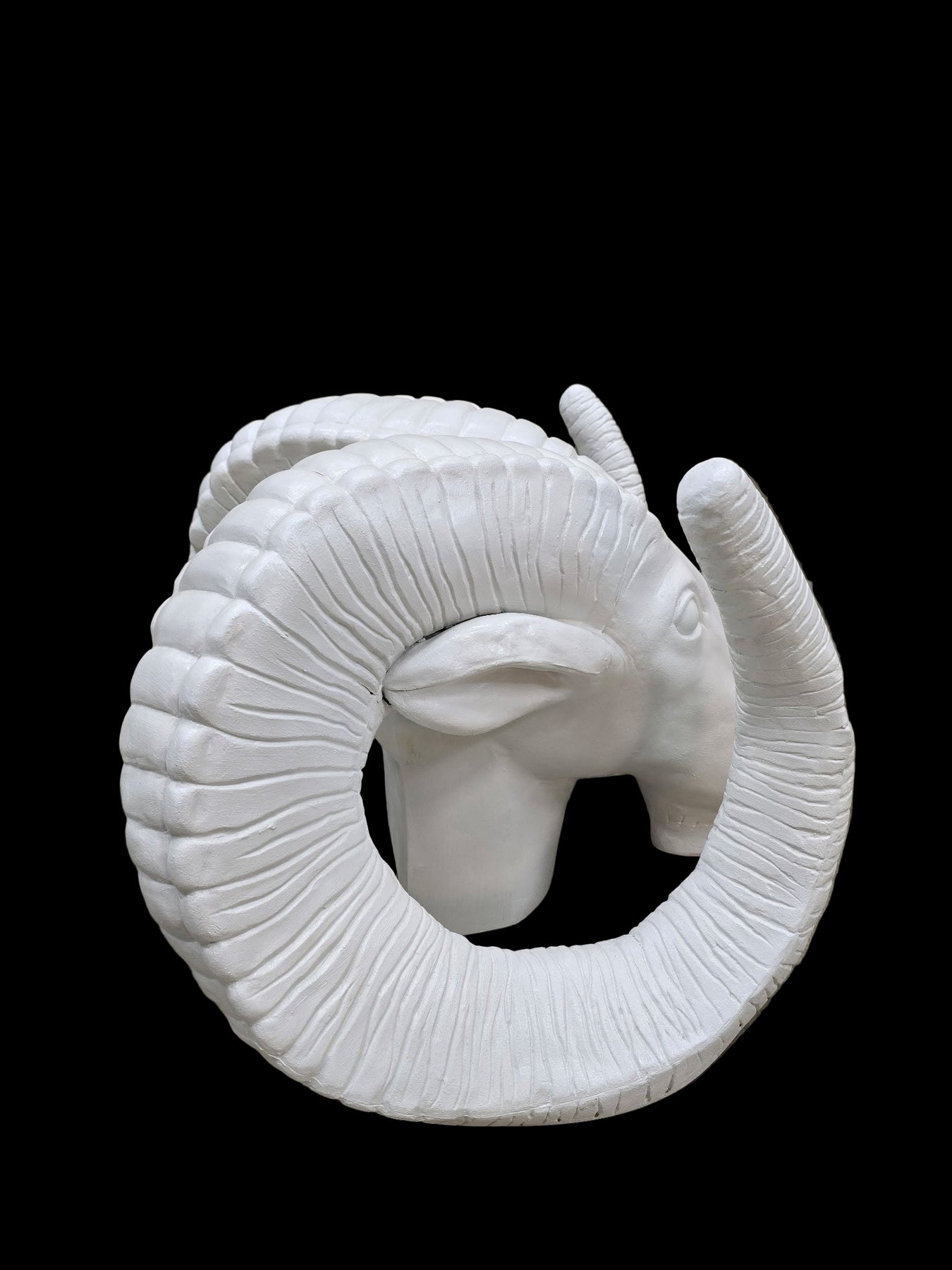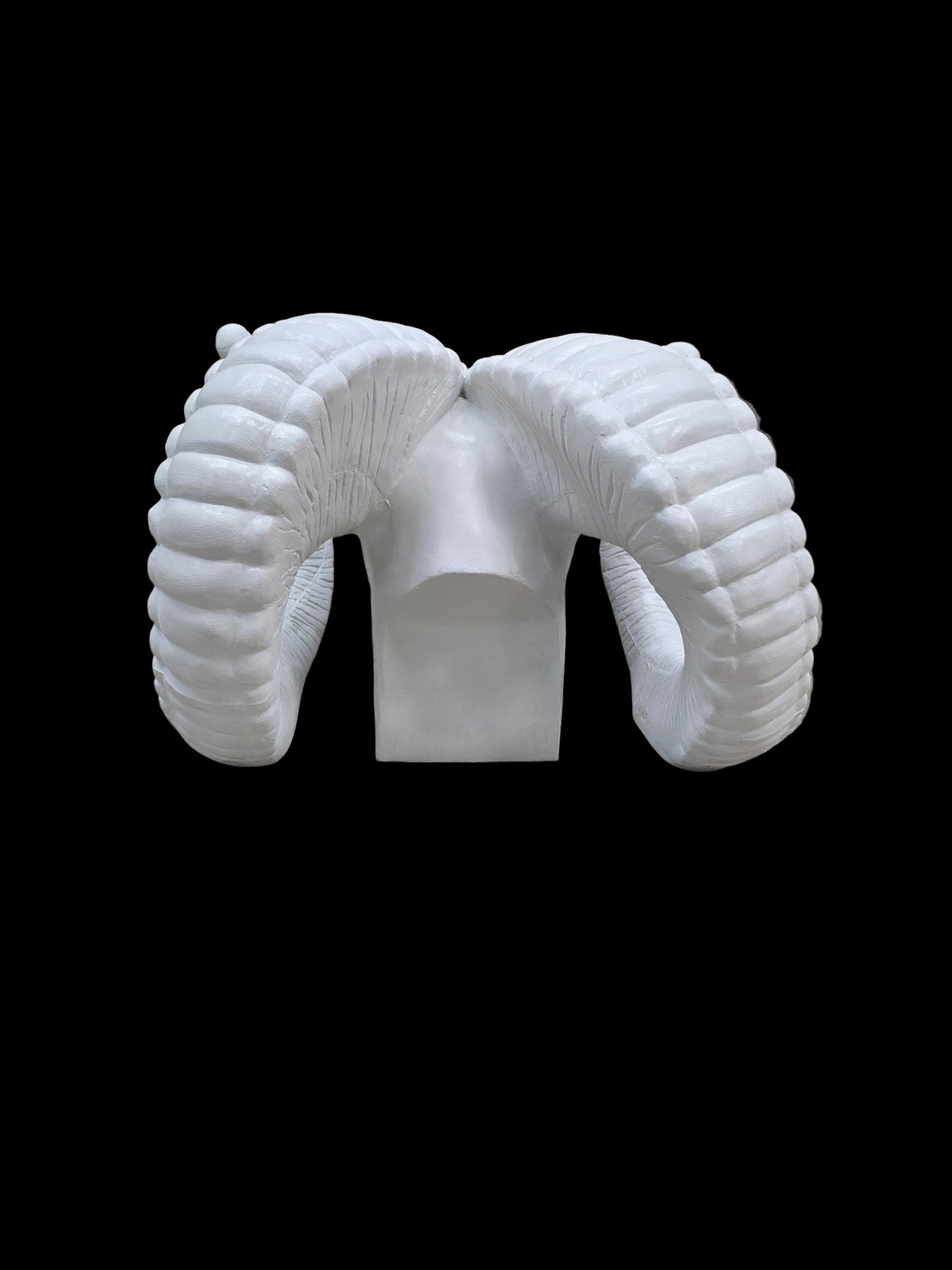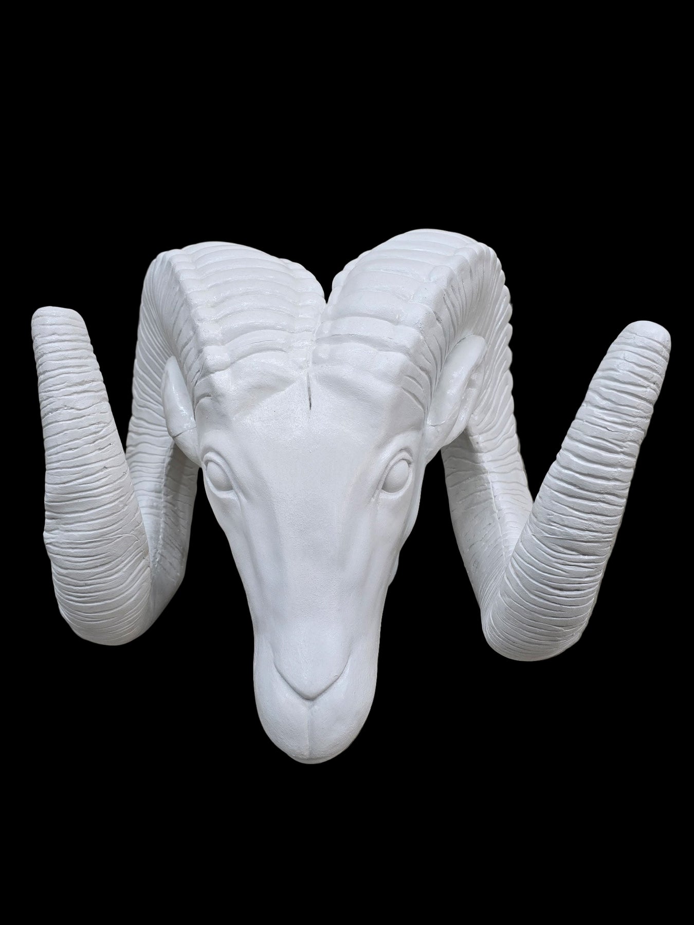 Decorate your rustic space with this oversized white rams head sculpture. The sculpture would look beautiful on your mantlepiece or on a side table. The monochrome coloring make it versatile choice for different color schemes.