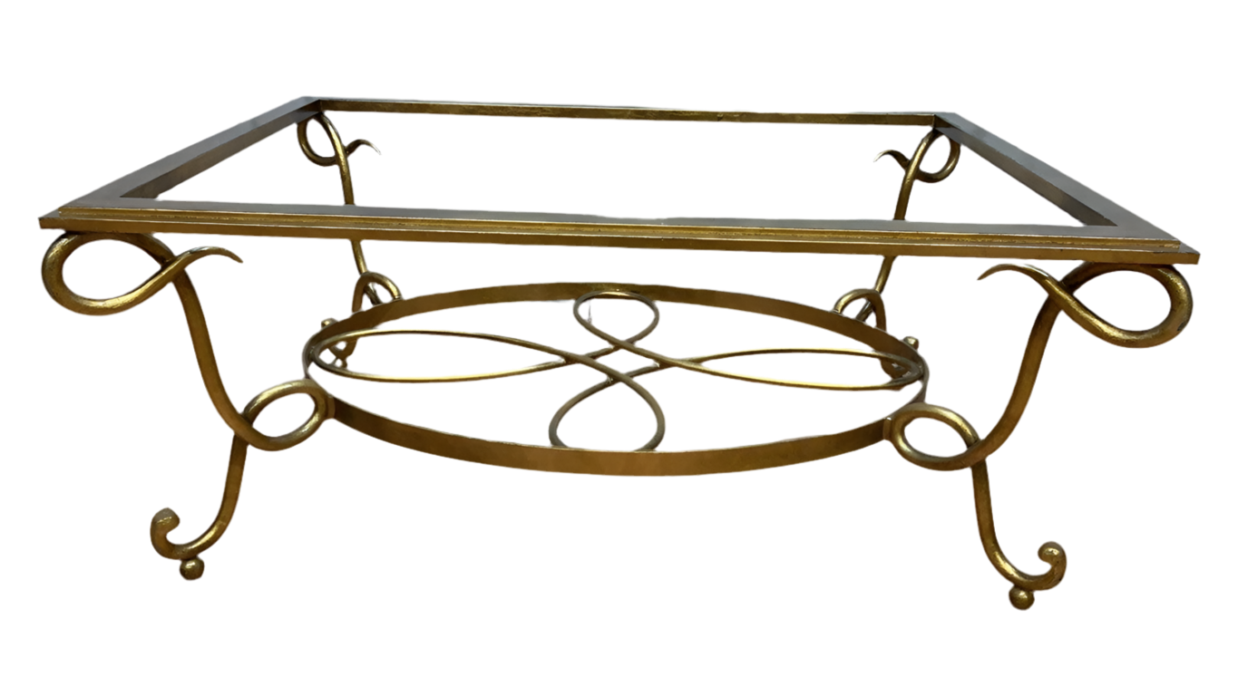 Art Deco Rene Drouet Style Gilt Wrought Iron Coffee Table with Beveled Glass