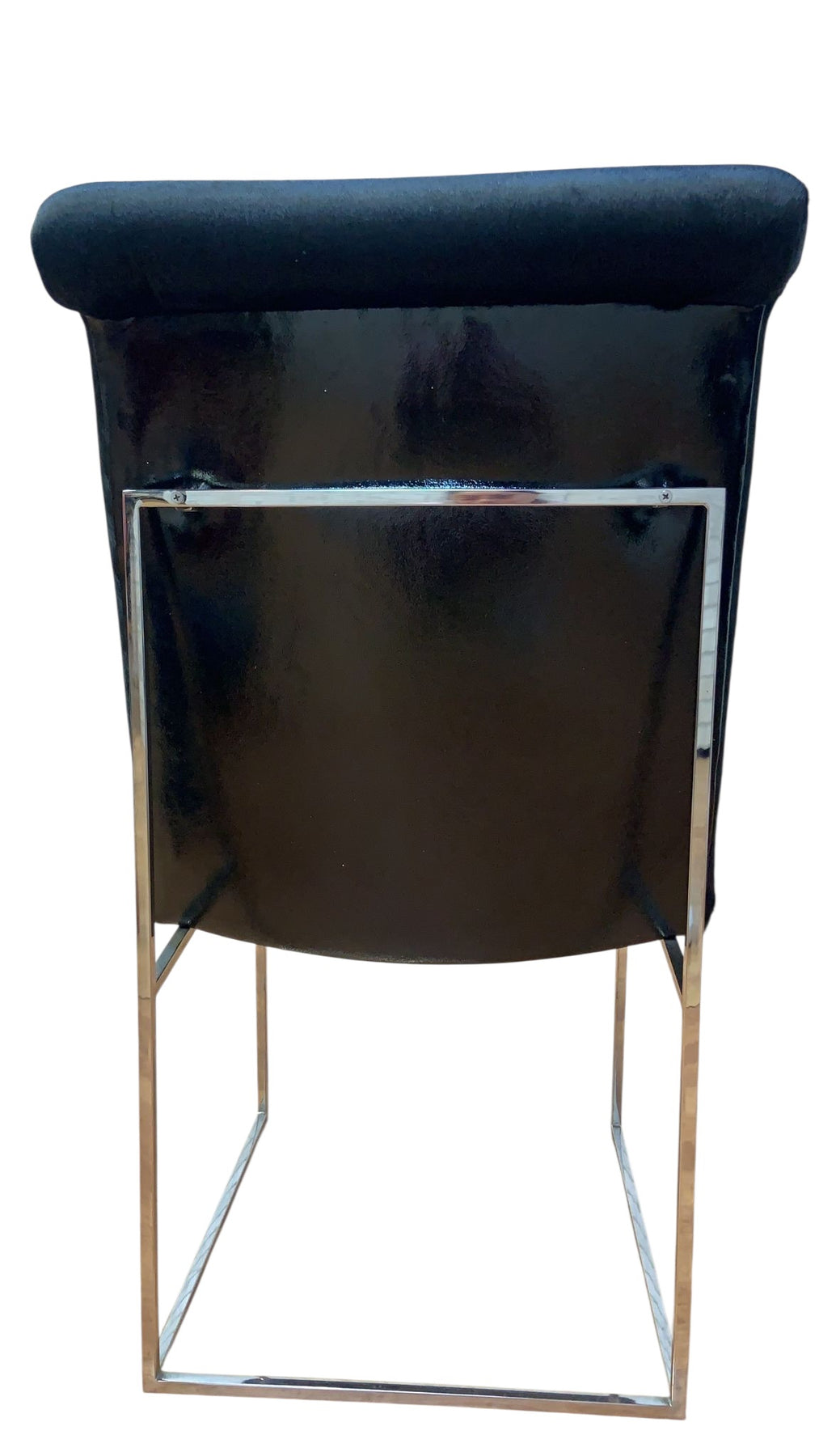 Mid Century Modern Milo Baughman for Thayer Coggin High Back Dining Chairs Newly Reupholstered in a Black Cow Hide Front with Holly Hunt Black Patten Leather Back - Set of 6