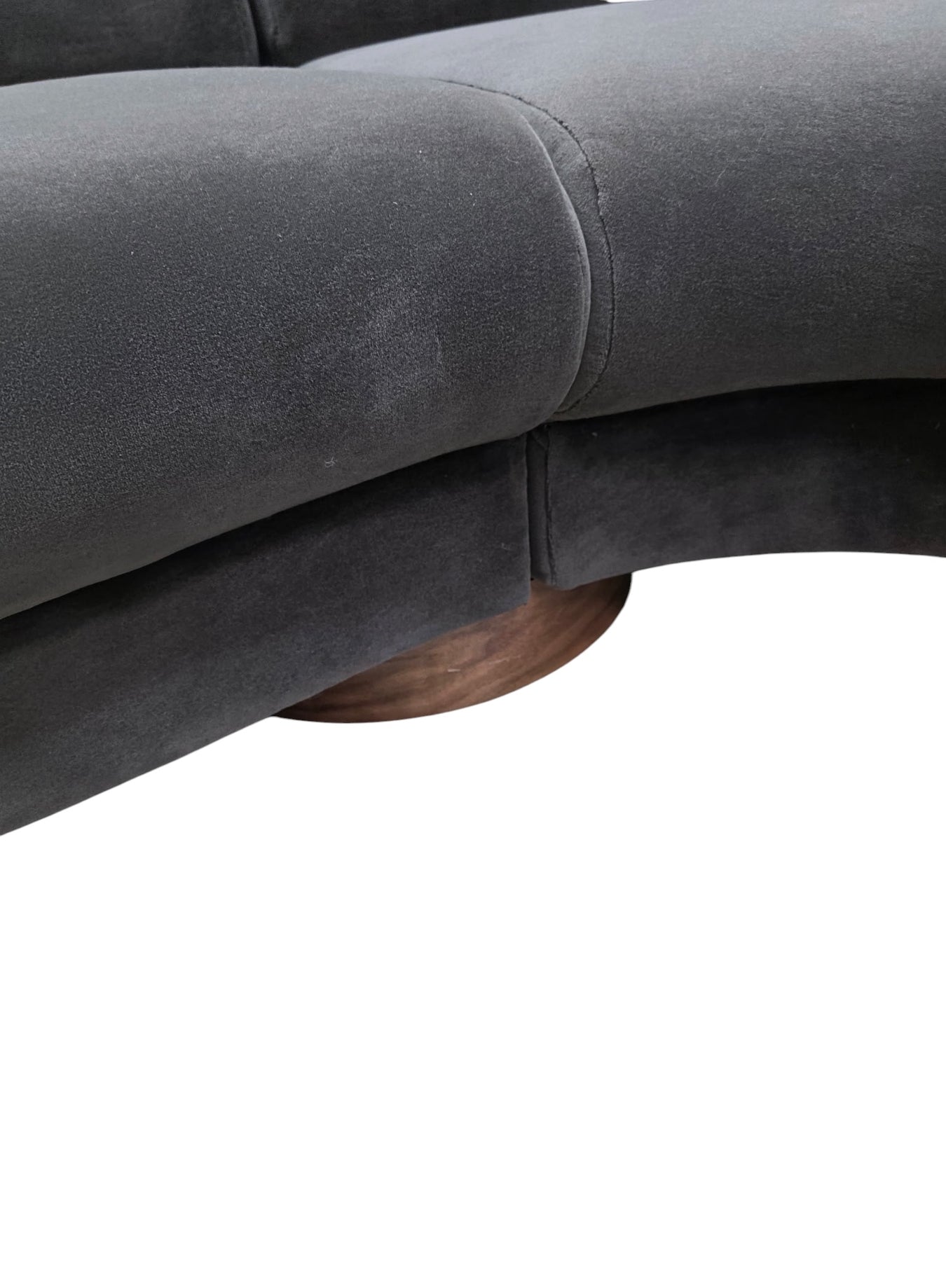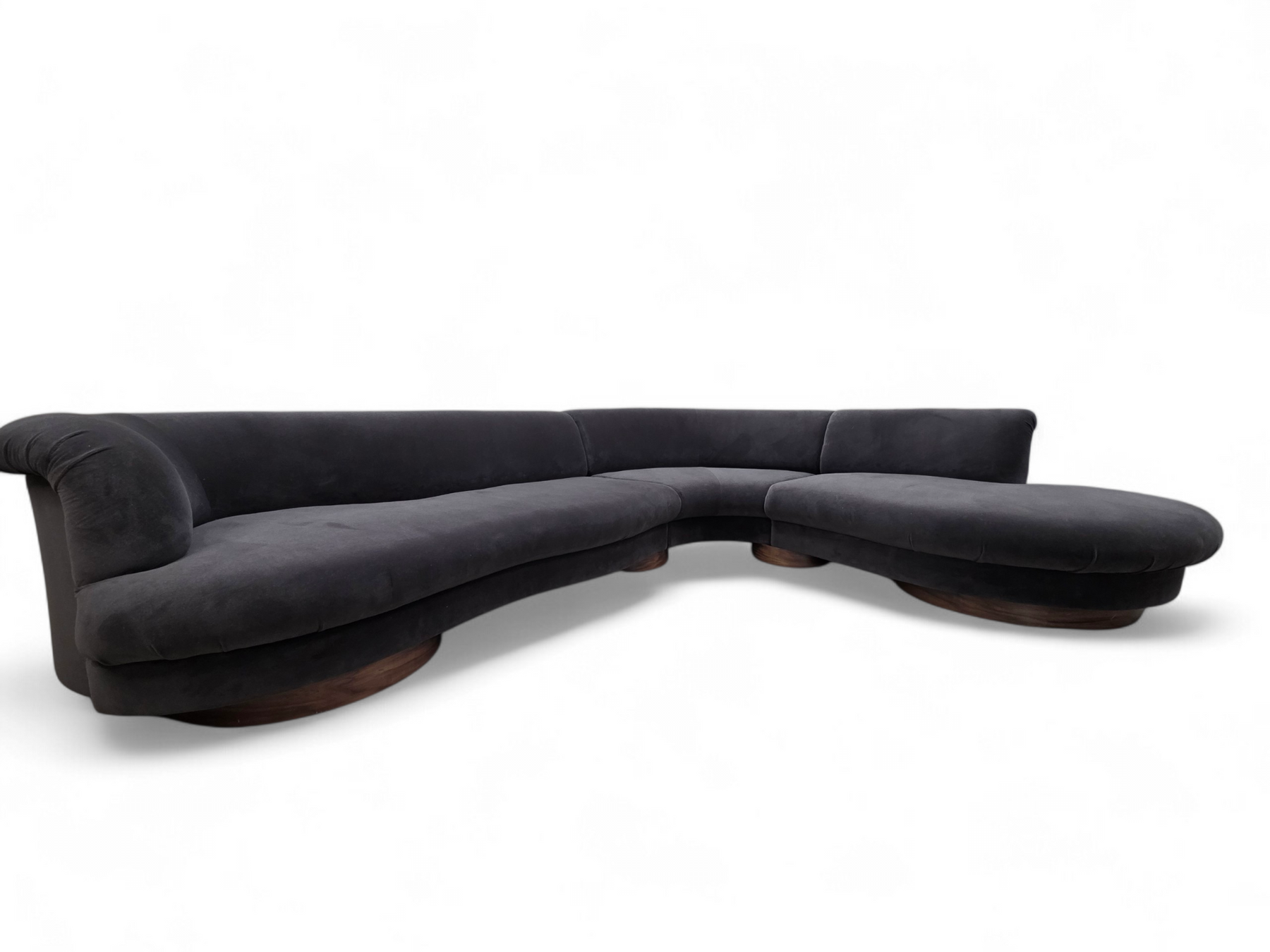 Postmodern Vladimir Kagan Style Serpentine 3 Piece Sectional Sofa by Weimann Newly Reupholstered in a Charcoal Alpaca Mohair Velvet