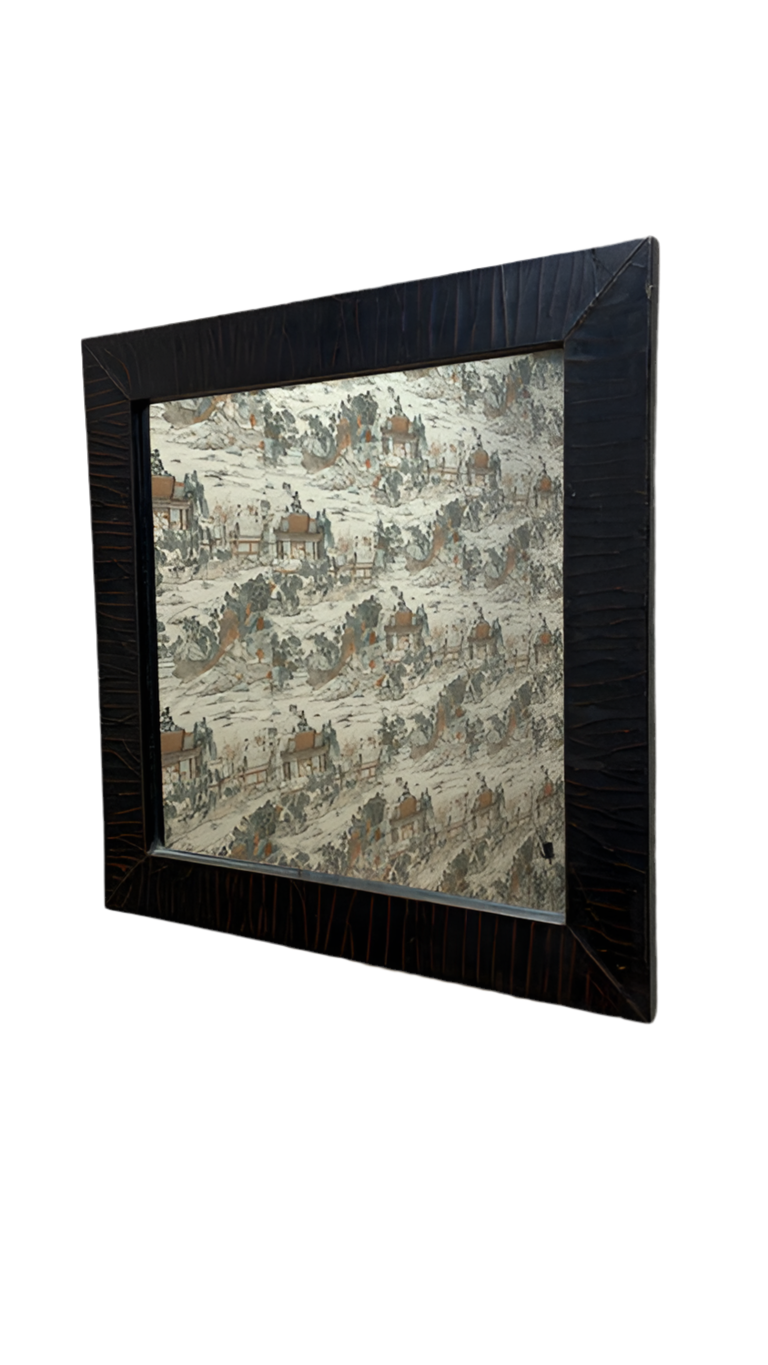 Vintage Shanxi Province Black Linen Wrapped Square Mirror